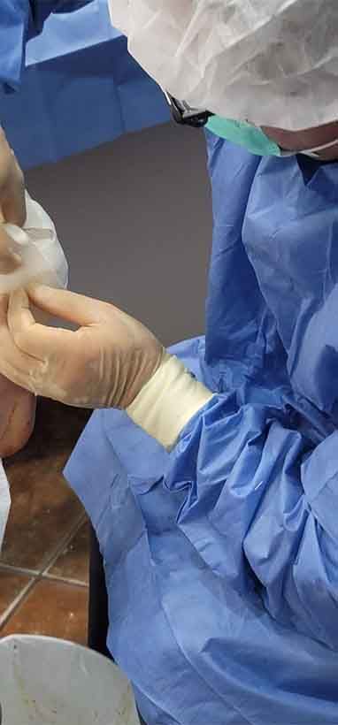 un médico realiza la cirugía, se cauteriza la matriz ungueal, con el fin de que la porción de uña encarnada ya no crezca. La operación solo se hace dependiendo de las características del paciente y el doctor recomendará en caso de ser candidato.